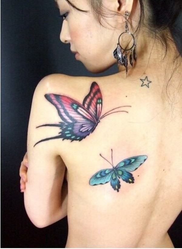 女性喜欢的漂亮的3D立体蝴蝶纹身图案