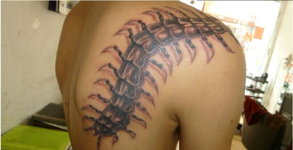 男生肩部具有攻击性的蜈蚣纹身图片