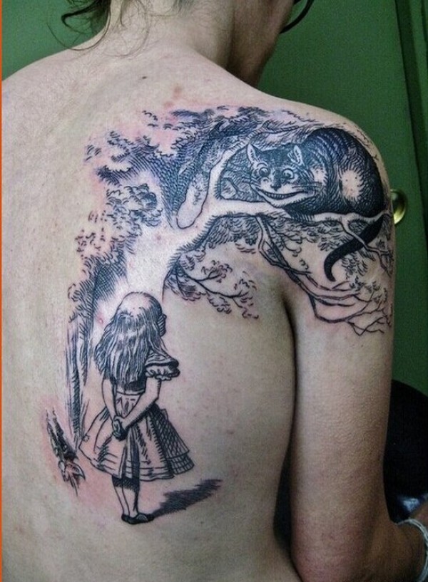 时尚个性肩背漂亮树纹身图案欣赏图片