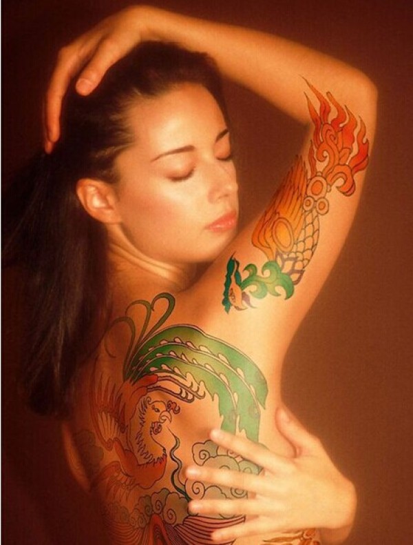 漂亮美女肩部唯美经典的凤凰纹身图案