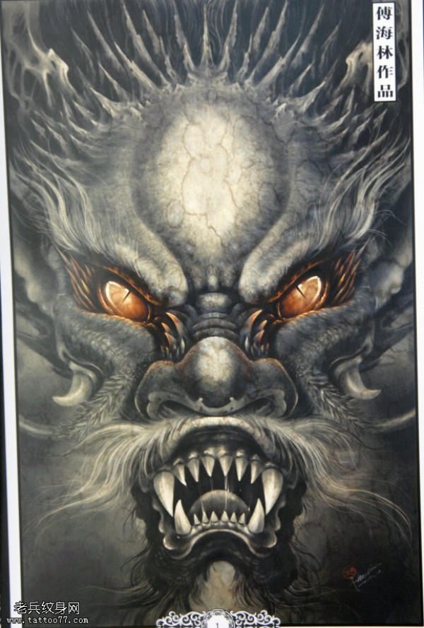 龙纹身手稿_一组老传统黑灰龙手稿纹身图案