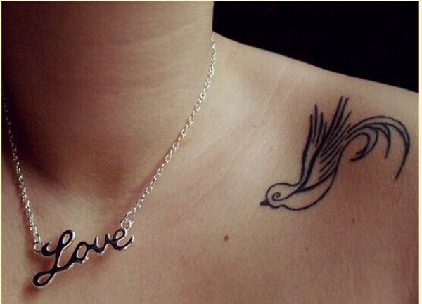 女生肩部漂亮时尚燕子纹身图案欣赏图片