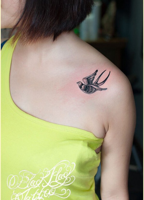 经典时尚女生肩部漂亮燕子纹身图案