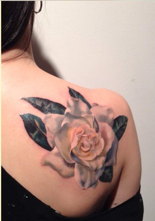 女生肩部漂亮好看的玫瑰花纹身图片欣图片