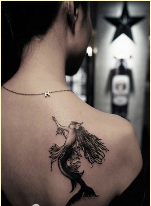 个性女生肩部时尚漂亮的美人鱼纹身图图片