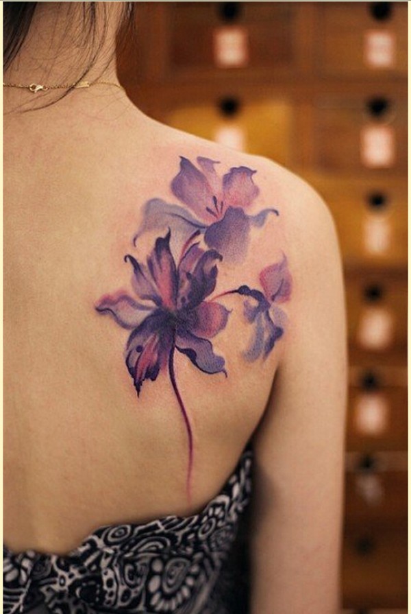 时尚女生肩部漂亮好看的水墨花纹身图图片