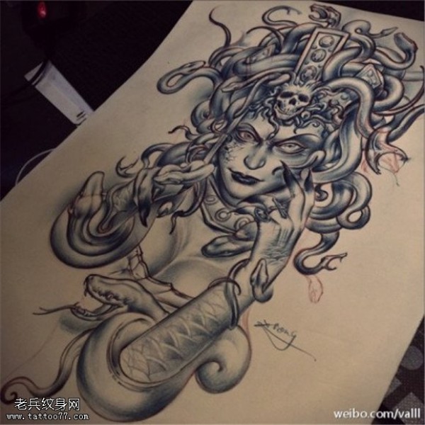 龙纹身手稿_一组老传统黑灰龙手稿纹身图案