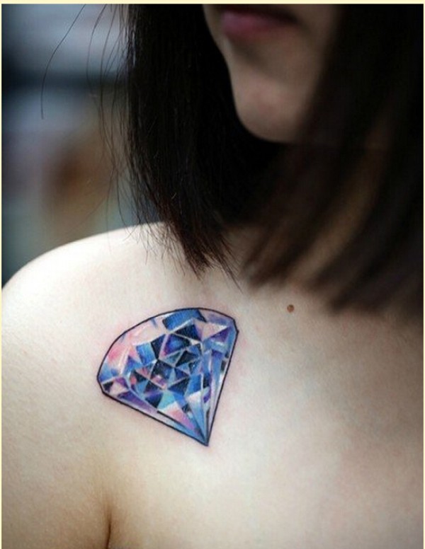 性感女生肩部漂亮好看的钻石纹身图案
