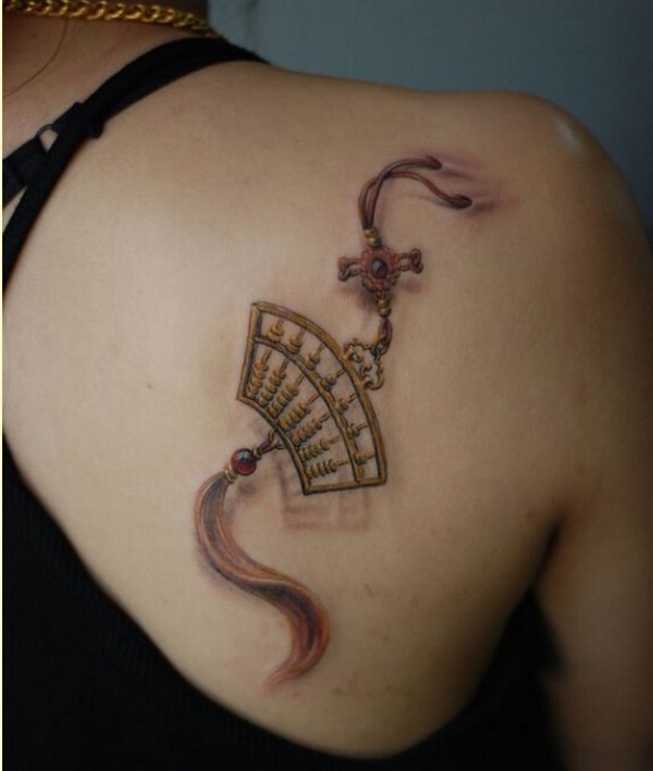女孩子肩背漂亮好看的小吊坠纹身图案