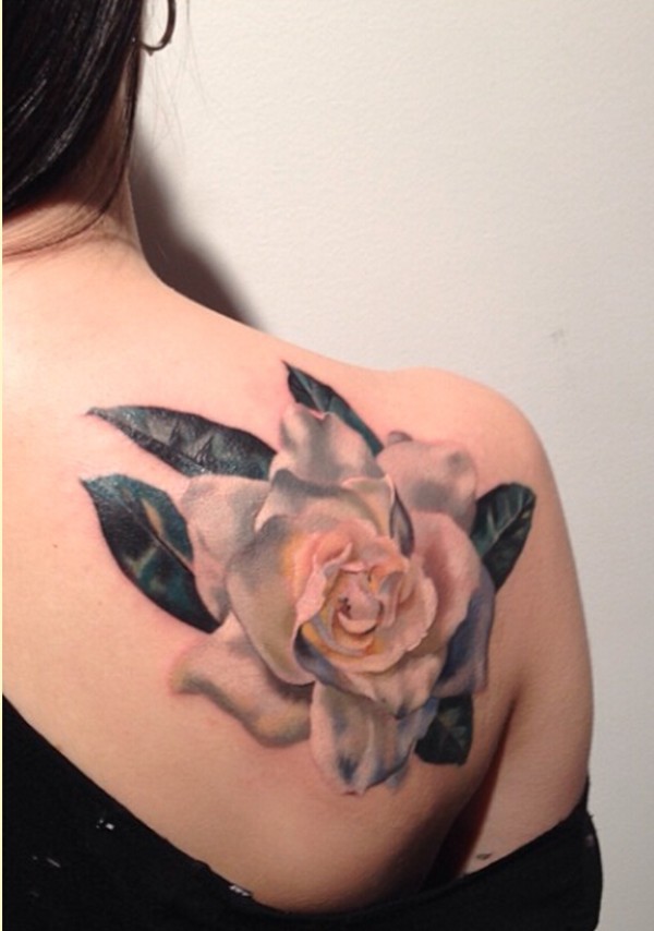 女生肩花纹身_15张女性双肩对称的肩花纹身图案作品图片