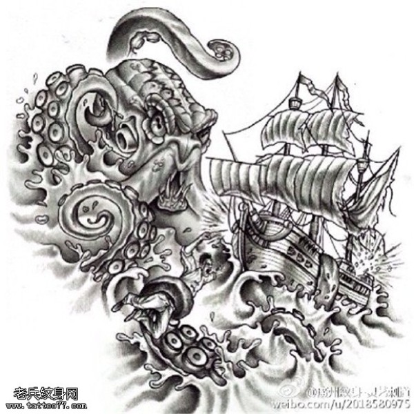 章鱼帆船纹身手稿图片