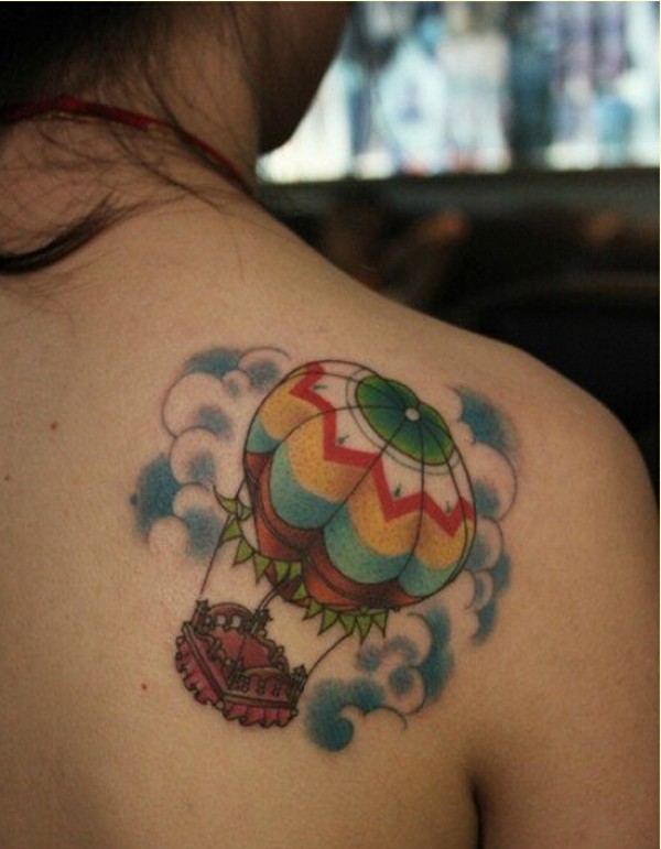 女生肩部漂亮好看的彩色热气球纹身图图片