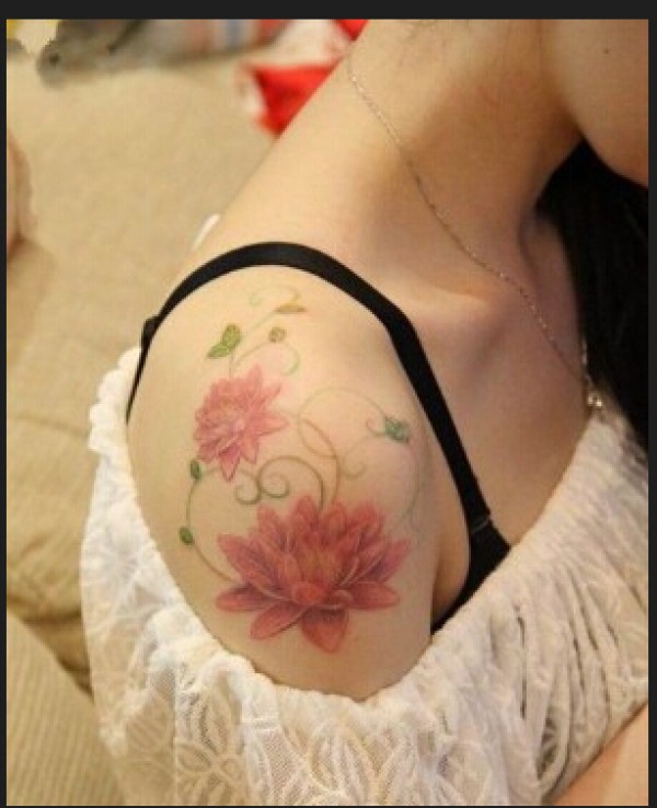 女生肩花纹身_15张女性双肩对称的肩花纹身图案作品图片