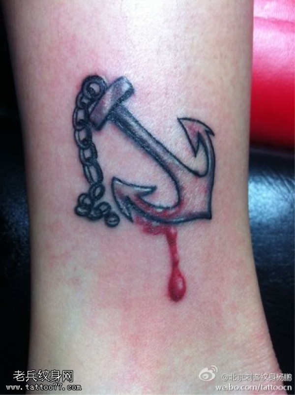 滴血铁色船锚纹身图案