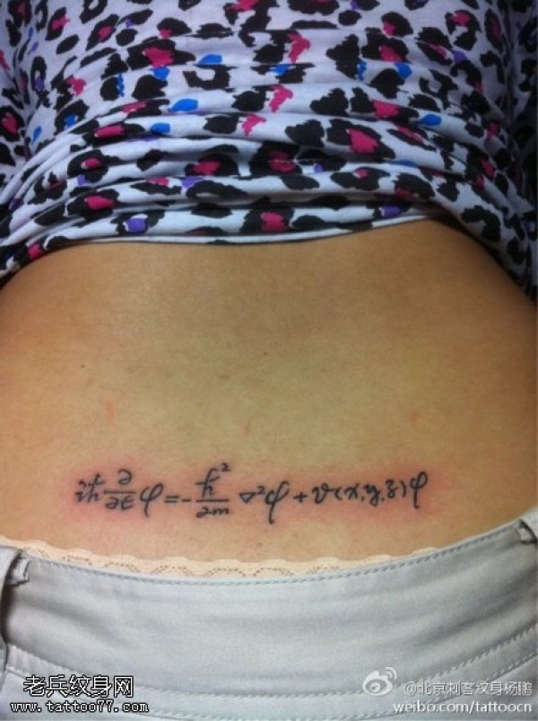 女生后腰纹身黑白灰风格抽象线条纹身图案