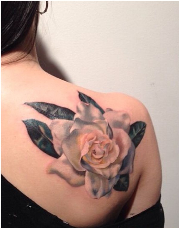 女生肩背唯美好看的玫瑰花纹身