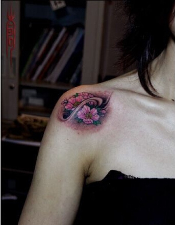 女生肩花纹身_15张女性双肩对称的肩花纹身图案作品图片
