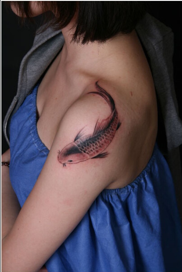 美女肩膀唯美时尚好看的鲤鱼纹身图案