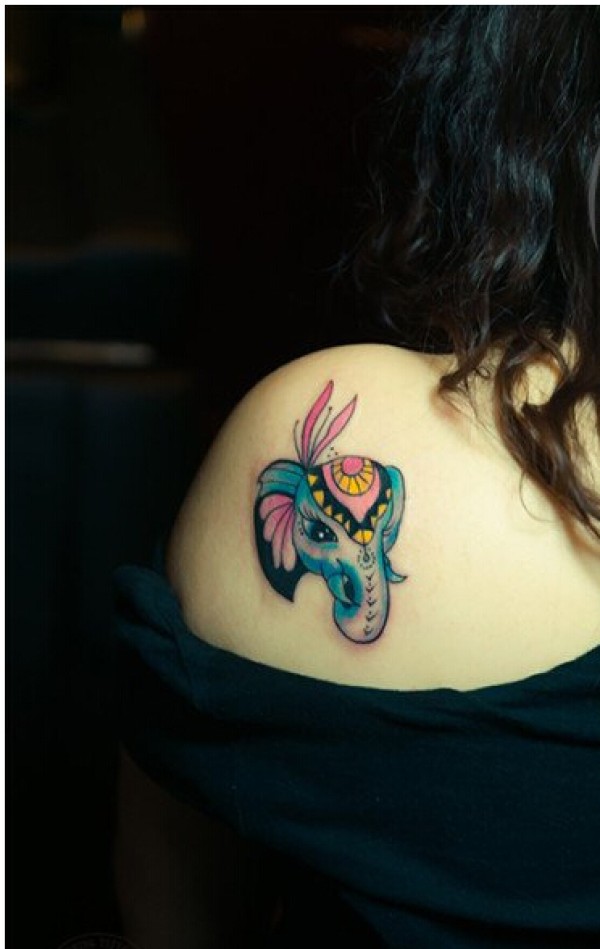 时尚女生后肩部超可爱好看的小象纹身图片