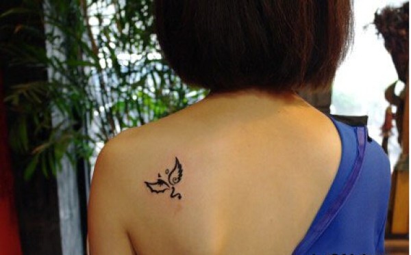 时尚女孩子肩背小清新图腾小翅膀纹身图片