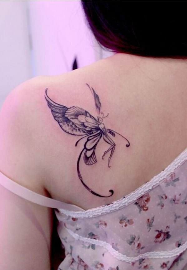 女生肩部漂亮时尚好看的小精灵纹身图图片