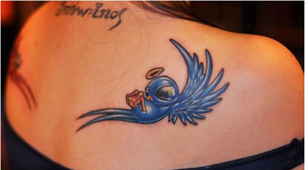 女孩子肩背漂亮好看的小鸟纹身
