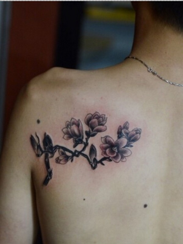 女生肩花纹身_15张女性双肩对称的肩花纹身图案作品图片