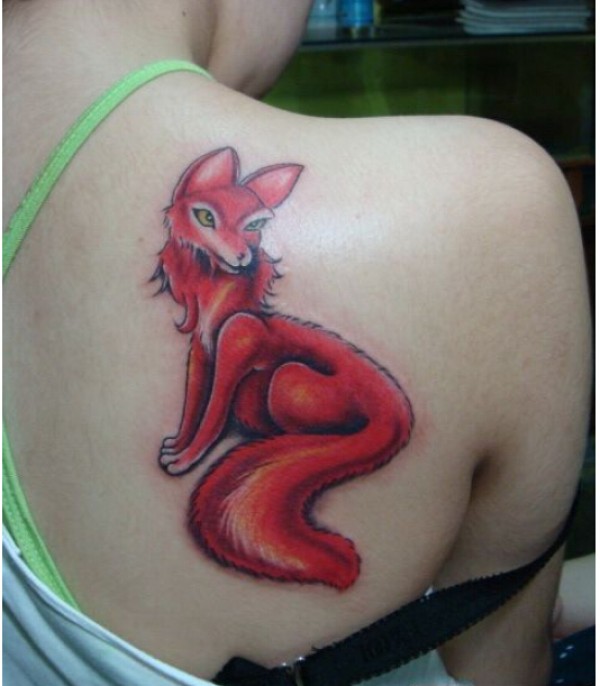 美女香肩唯美漂亮好看的红色狐狸纹身图片