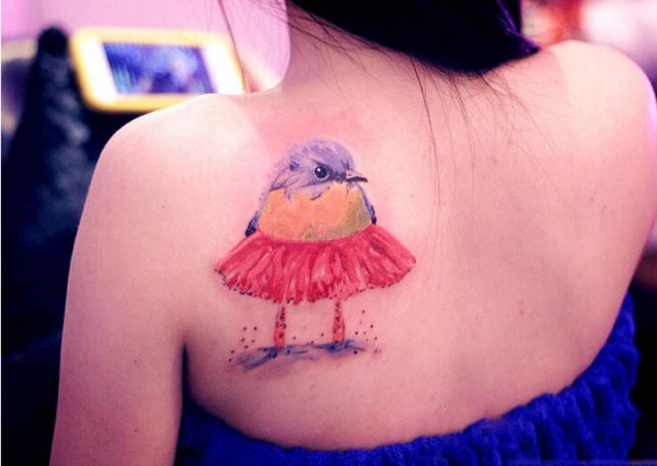 美女肩部个性创意穿蓬蓬裙小鸟纹身图图片