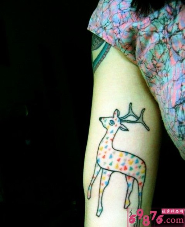 手部彩色小鹿纹身图片
