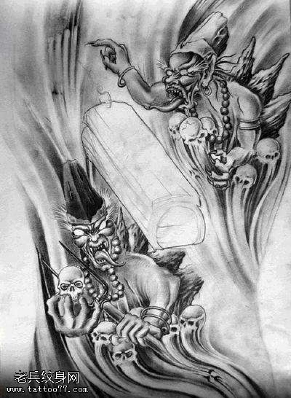 能面万媚纹身手稿_52张日式能剧面具纹身手稿图案素材欣赏