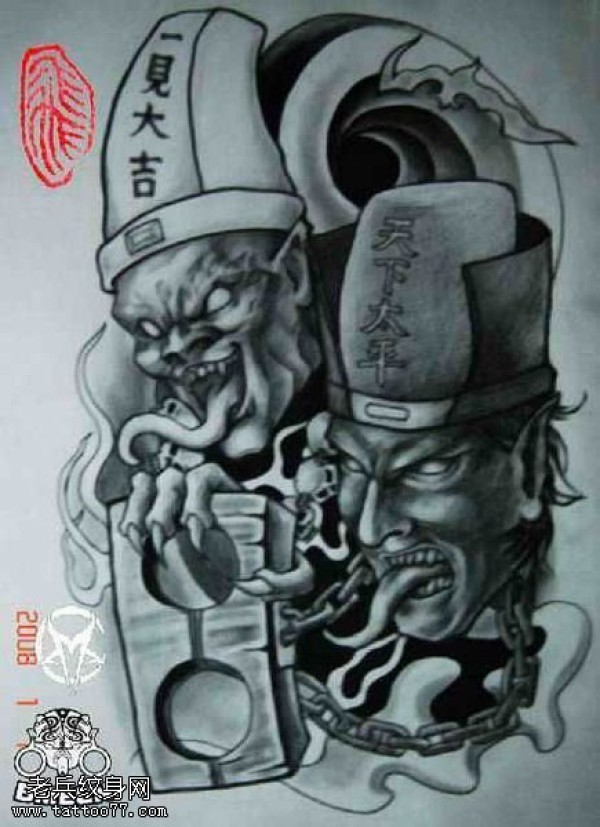 能面万媚纹身手稿_52张日式能剧面具纹身手稿图案素材欣赏
