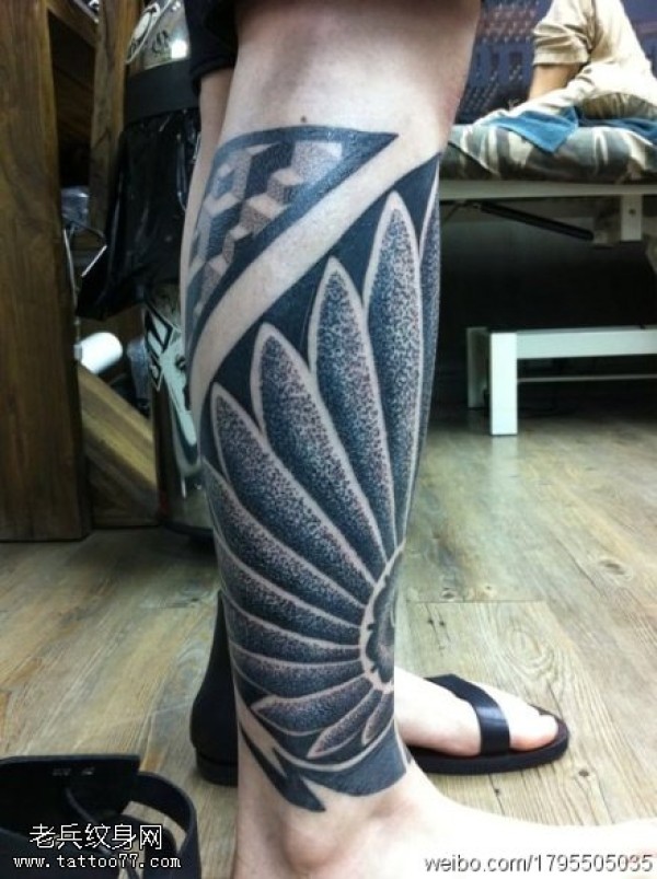 花腿纹身--一组大黑腿纹身图案作品欣赏