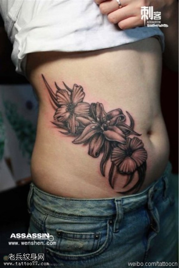 清新花朵腿部纹身图案图片_植物纹身图案大全_纹身图吧
