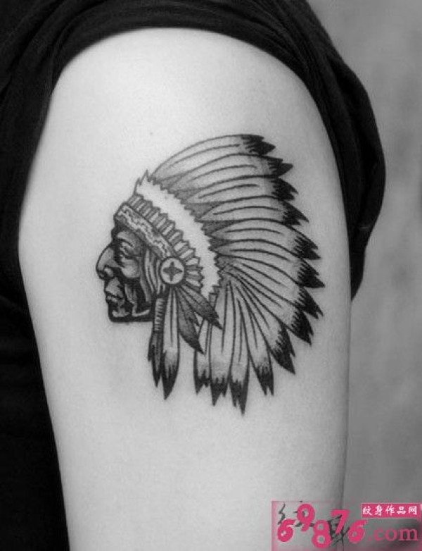 女生手臂印第安人头像纹身图片
