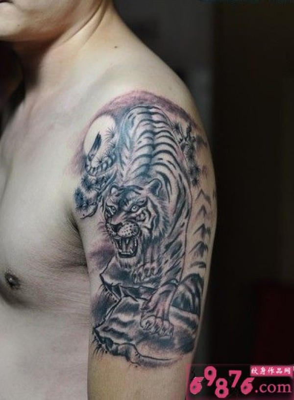 霸气半胛老虎纹身_动物纹身图案大全_纹身图吧