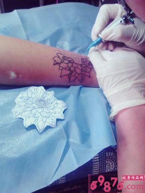 手臂大丽菊纹身过程图片