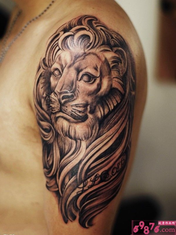 雕塑风的狮子胳膊纹身图案