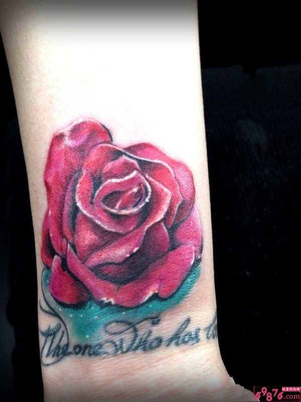 手腕娇艳玫瑰花纹身图片