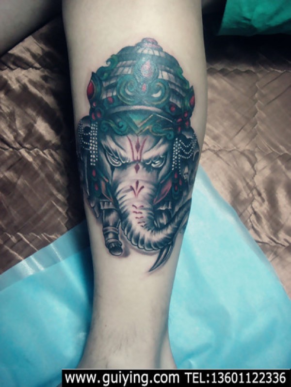 手臂黑灰象神_一组12张手臂上的黑灰象神纹身图案作品欣赏
