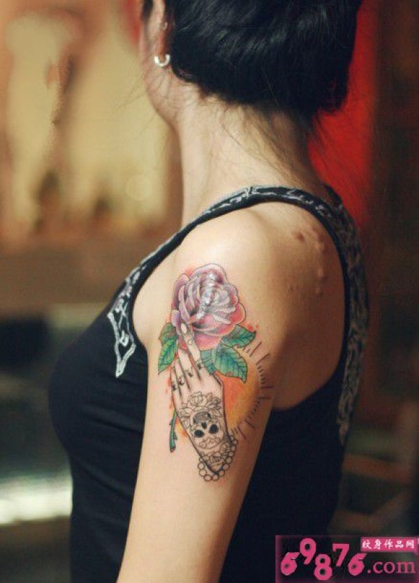 欧美玫瑰纹身 男生手臂上花朵纹身图片