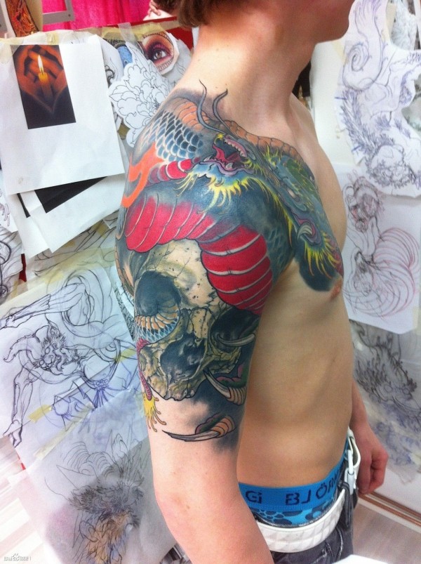 意大利纹身师 Daniele Trabucco 的半甲龙纹身