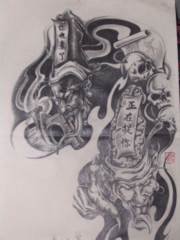 能面万媚纹身手稿_52张日式能剧面具纹身手稿图案素材欣赏