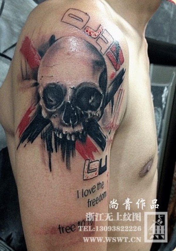 个性手臂悲伤的骷髅纹身图案图案图片_骷髅纹身图案大全_纹身图吧