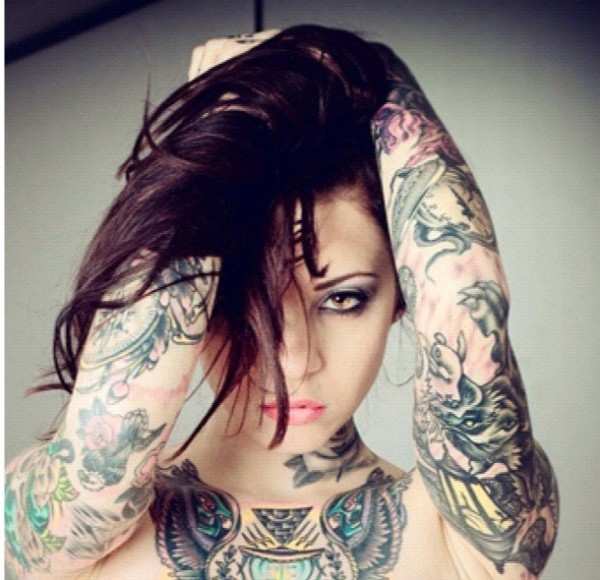 性感时尚的美女花臂纹身