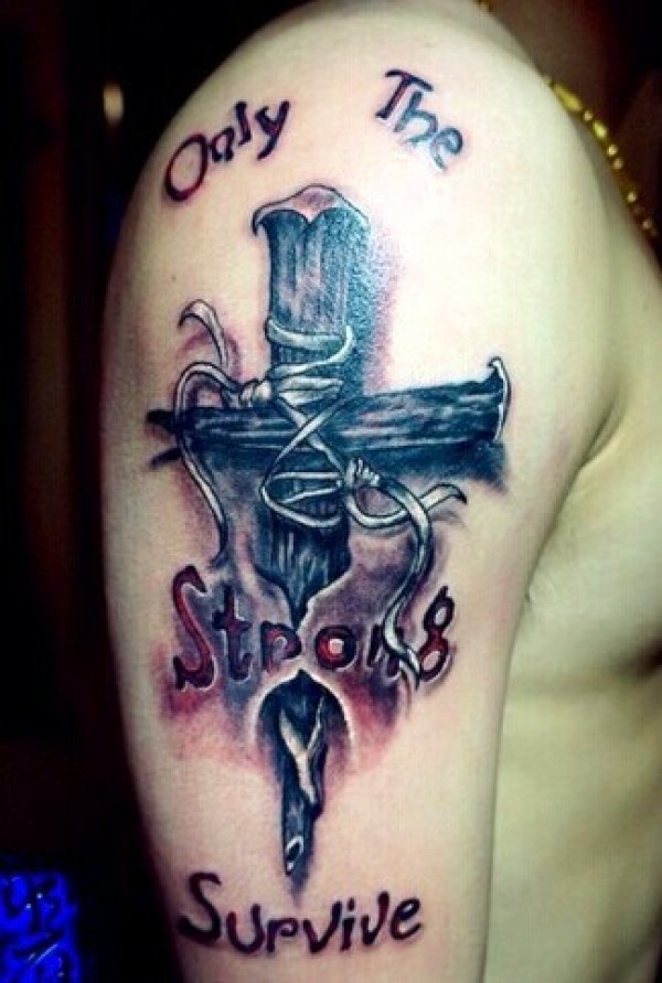 个性十足的手臂十字架英文纹身