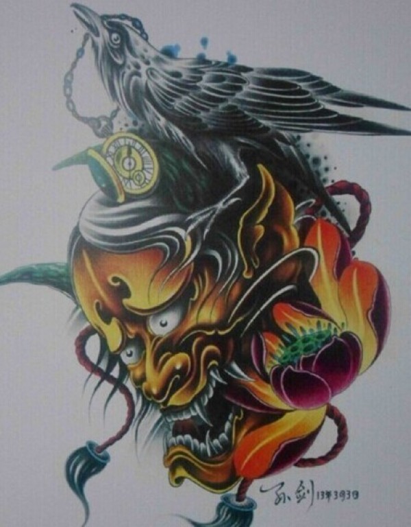 能面万媚纹身手稿_52张日式能剧面具纹身手稿图案素材欣赏