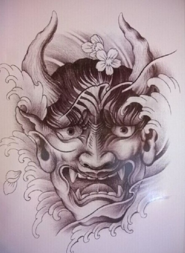 能面万媚纹身手稿_52张日式能剧面具纹身手稿图案素材欣赏