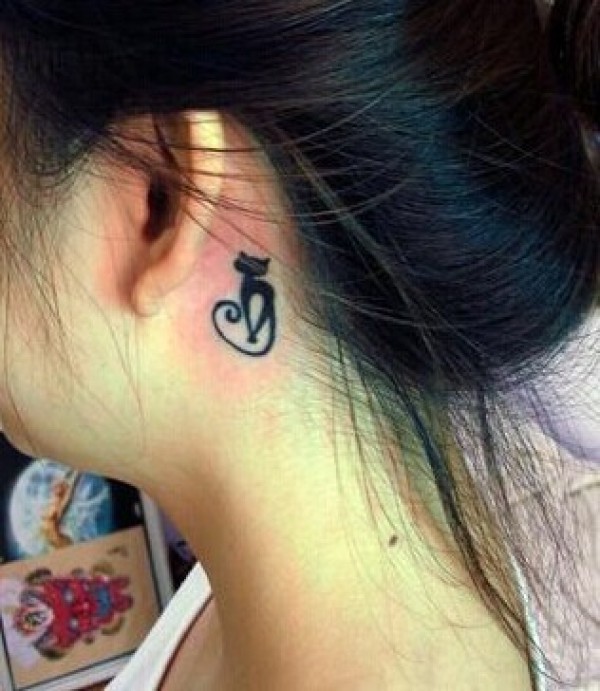 耳朵后面小巧可爱的猫纹身