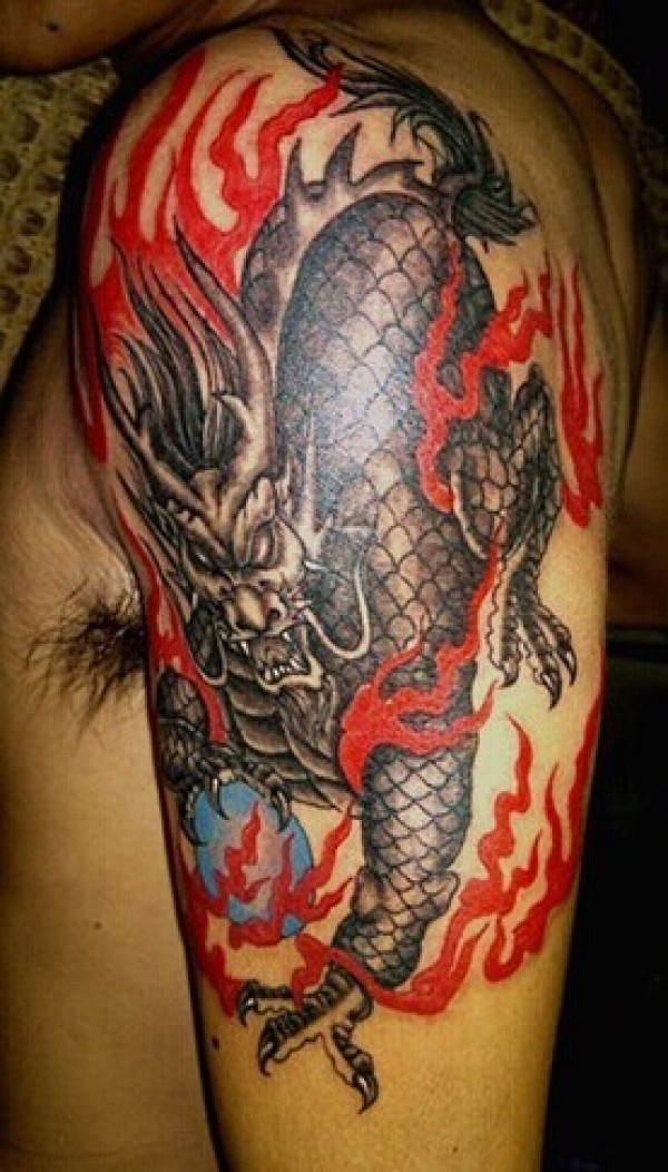 半身盘龙纹身图